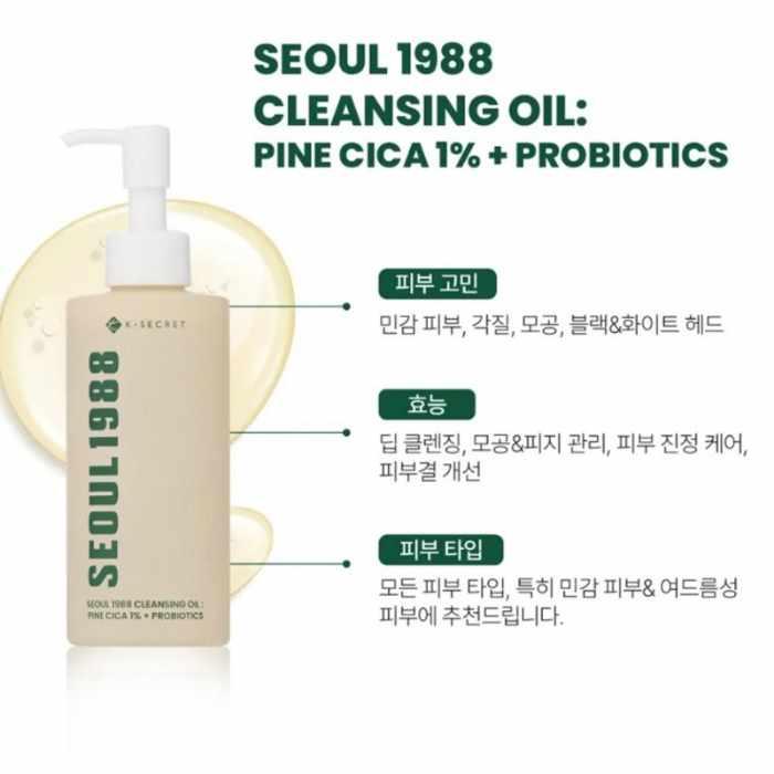 Cleansing Oil Korea, Pine Cica Cleansing Oil, Probiotics Oil Cleanser, Sensitive Skin Makeup Remover, Hydrating Cleansing Oil, K-Secret Seoul 1988 Skincare